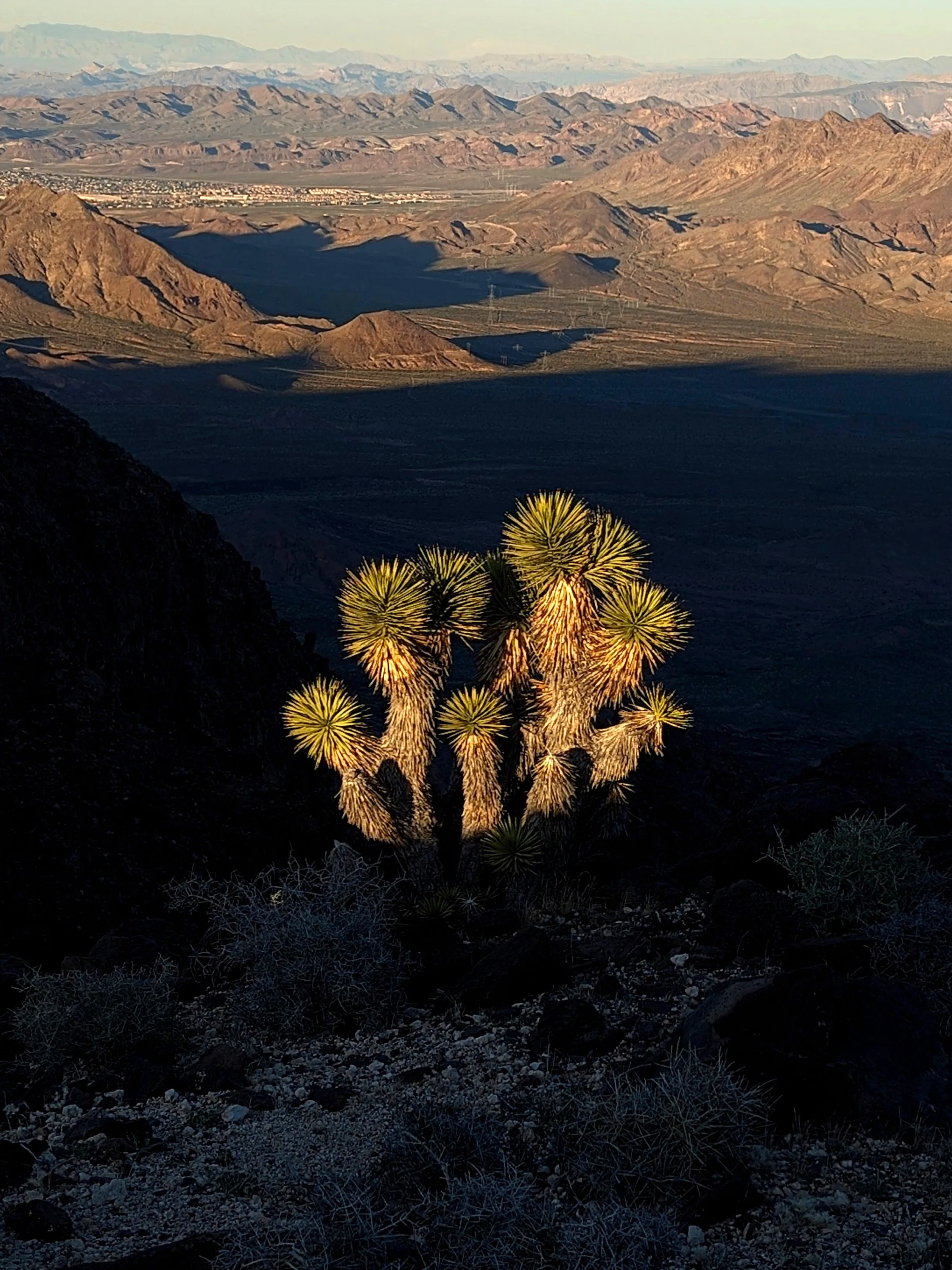 Last Light: I caught the last bit of light just after crossing over Fracture Ridge. The ridgeline’s shadow extended nearly all the way to Boulder City and just before it disappeared for good, it spotlighted this lone Joshua Tree as its last act.