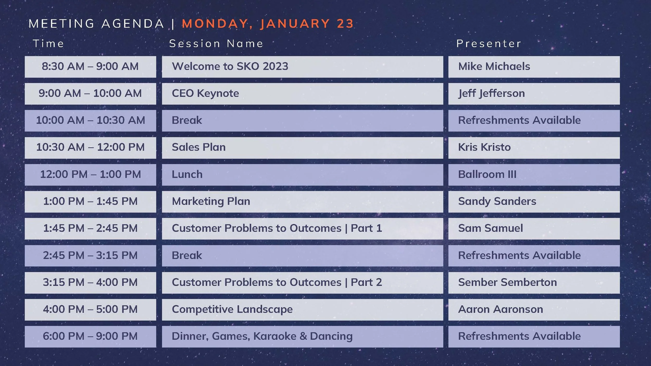 VARIETY: I love adding different looks to presentations to ensure the viewer is seeing something different each time a category or idea changes. Whenever possible, I also work to create personalized imagery and custom slides to bring it all together.